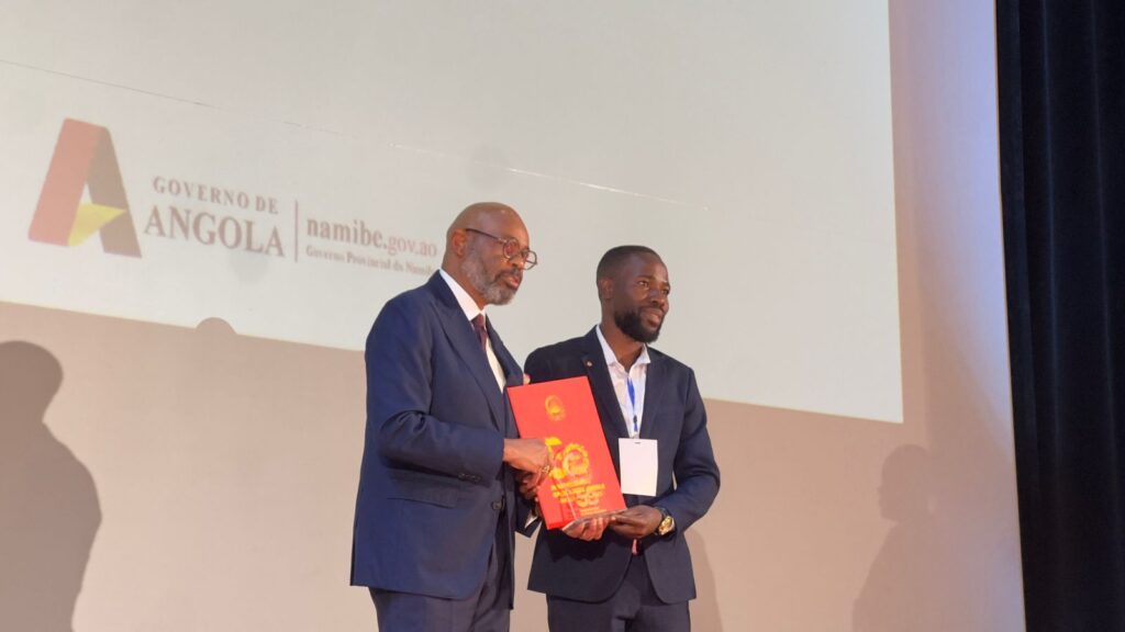 Neste exacto momento, Alfredo Calunamba está a receber a sua insígnia de honra das mãos do Governador Provincial do Namibe. A cerimónia decorre no Centro Cultural Mussungo Bitoto, onde centenas de pessoas testemunham o evento.