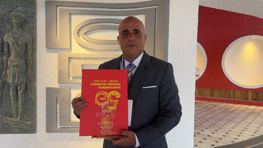 Anderson Alexandre Pinheiro da Cruz recebeu a sua condecoração durante a cerimónia oficial no Centro Cultural Mussungo Bitoto. O Governador Provincial do Namibe entregou-lhe pessoalmente a insígnia de honra.