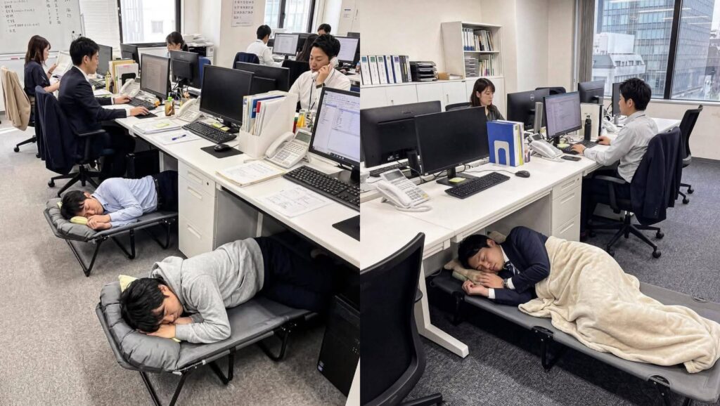 No Japão, tirar uma breve soneca no trabalho não é necessariamente visto como falta de profissionalismo. A prática é conhecida como inemuri, termo que pode ser traduzido como “estar presente enquanto dorme”. Diferente da ideia de descanso prolongado, o inemuri refere-se a cochilos curtos, geralmente em posição sentada, sem que a pessoa deixe de estar disponível.