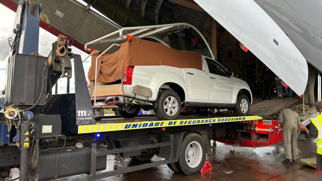 A viatura, preparada para transportar o líder da Igreja Católica, desembarcou na província como parte dos preparativos logísticos para o evento, que integra a agenda oficial da visita papal ao país.